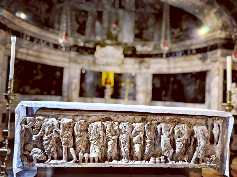Престол-саркофаг в крипте датируется началом IV века. Он был возведен над могилой святой, ибо, согласно преданию, ее ученики, первые христиане в этом городе, погребли праведную Марфу в доме, где она жила, и здесь же были совершены первые христианские богослужения.