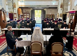 В ходе общего заседания были рассмотрены вопросы, касающиеся литургической и административной жизни приходов, а также утверждён план жизни и деятельности викаритства на текущий год.