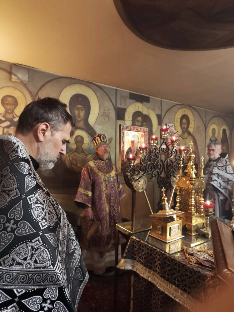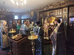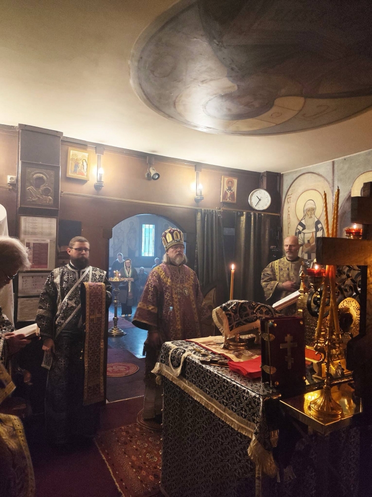 Высокопреосвященнейшему владыке сослужил протоиерей Николай Ребиндер, настоятель Трехсвятительского храма, и духовенство храма.